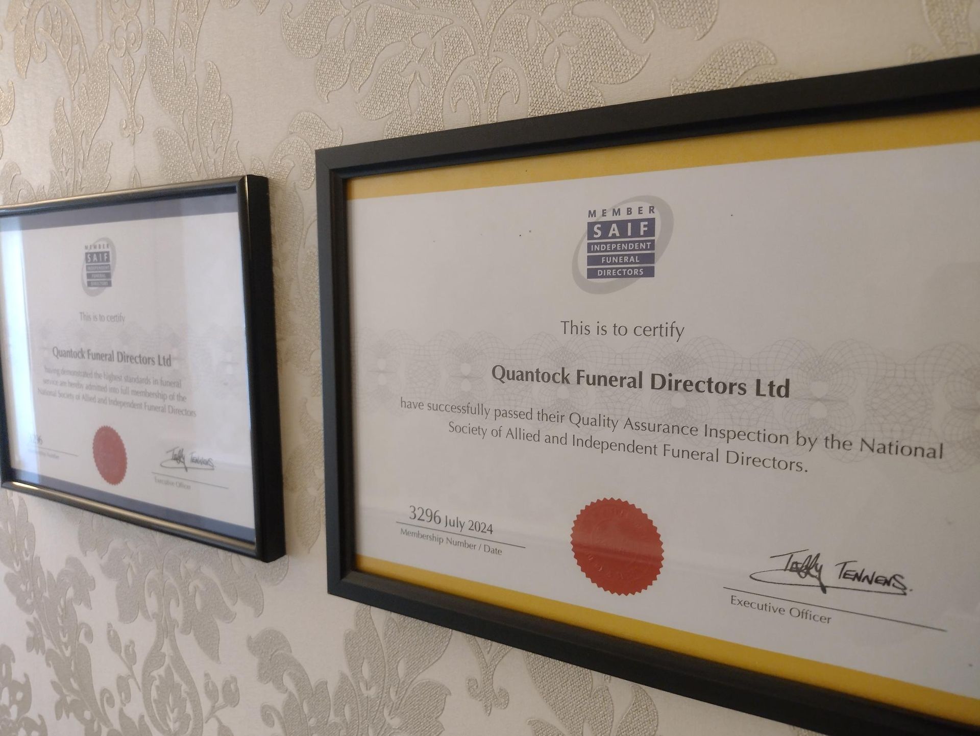 We don't do flashy social media campaigns. Instead, Quantock Funeral Directors are quietly here in the background, providing a personal service 24 hours a day, 7 days a week to the towns of Taunton, Wellington, Taunton Deane and all the Quantock Villages including Bishops Lydeard, Williton and all the other surrounding areas in Somerset. We make a commitment to you to make this difficult time as easy as we possibly can. We are backed up by a great team of professional bearers.