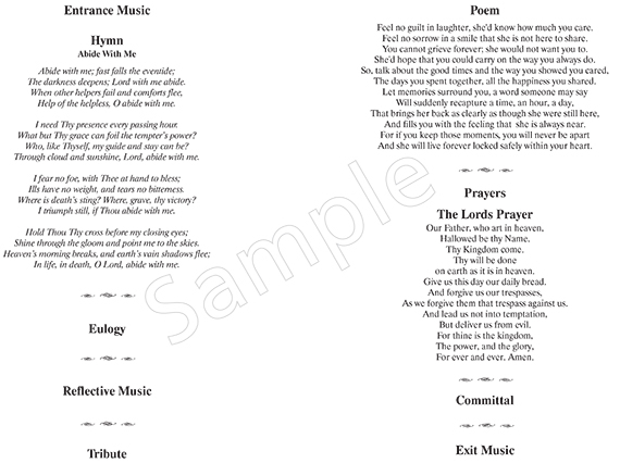 Service Sheets for Funerals in Taunton & Wellington, Somerset Telephone